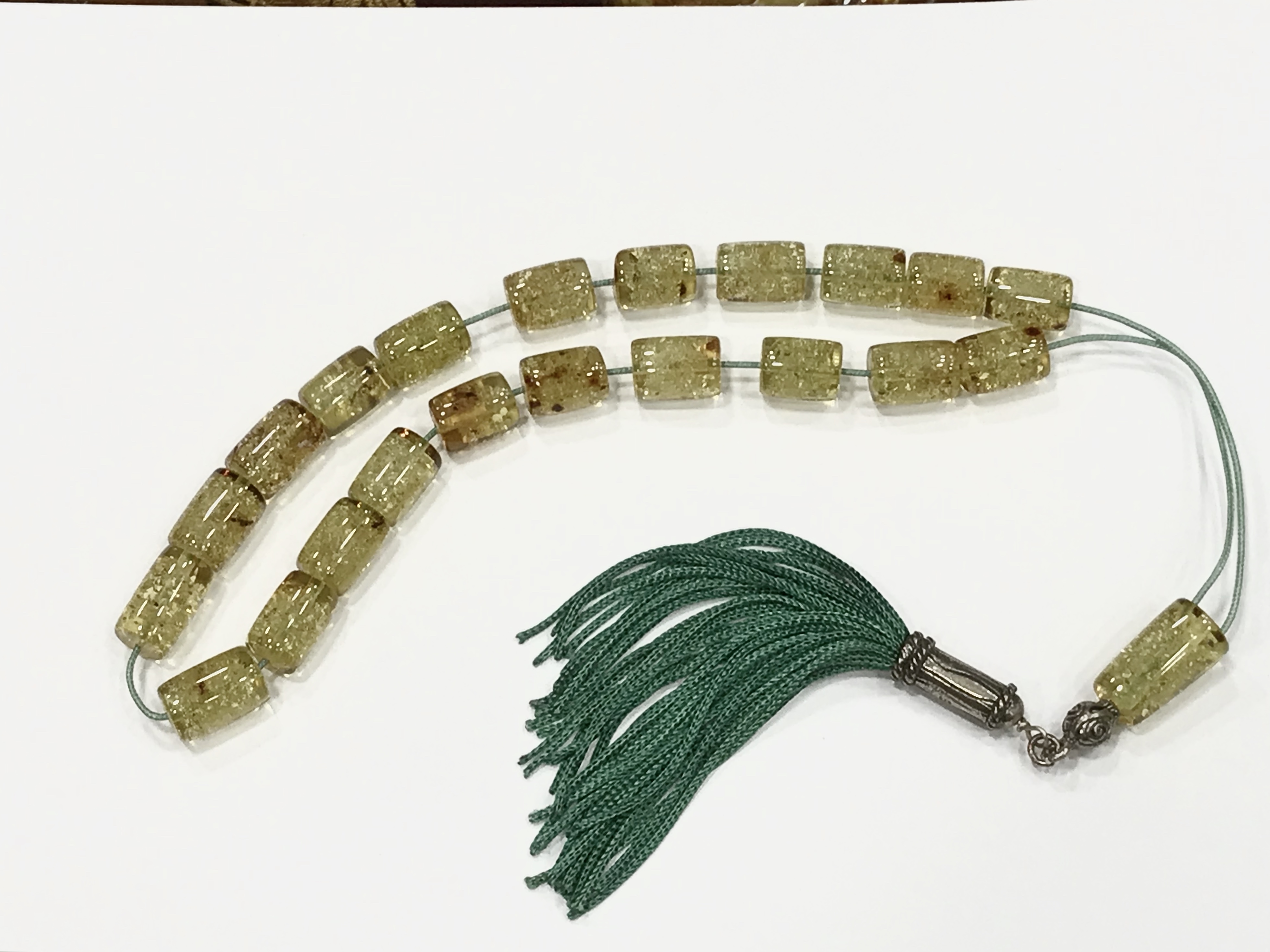 hand made komboloi made of coloumbian amber with silver 30 grams