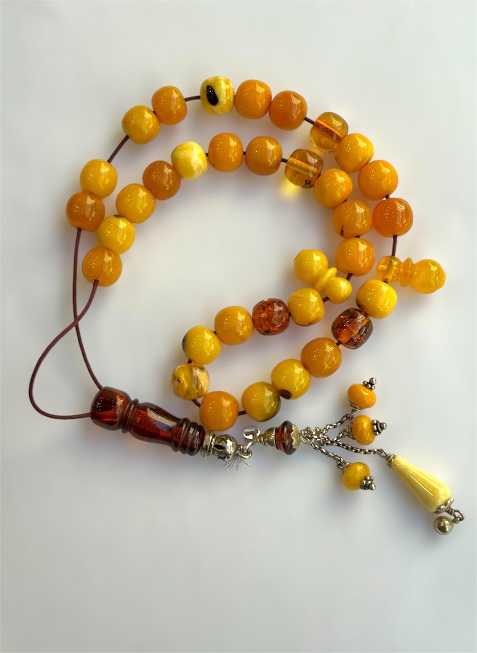 amber komboloi withe silver 33 beads 46 grams